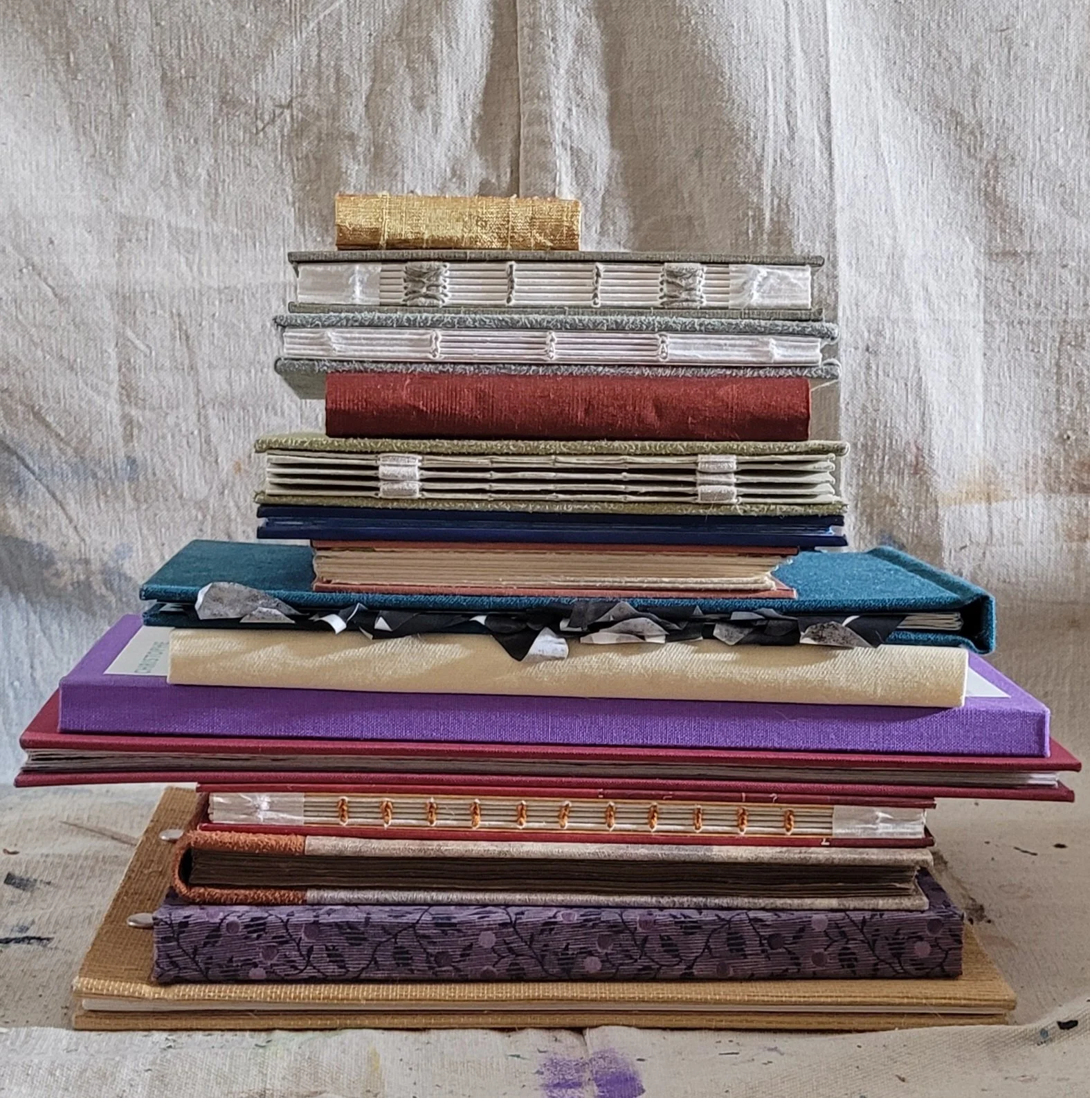 Above are examples of other handmade books I’ve make. Lots of binding and book styles are shown: exposed binding (my fav), half bound binding, stab binding, case binding, envelope book, and accordion. I also explored non-traditional book designs, materials, and miniatures. You can see more archived on my website.